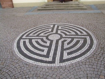 Of course the medieval Chartres Cathedral labyrinth design [left] was considered, but the eleven-circuits were just too large for our space. Ancient classical designs would fit, but were too small, too simple and too archaic. A seven circuit labyrinth would be ideal – the Lambertus labyrinth [right] in Mingolsheim, Germany was seemingly the choice. We then found (we were called to) the Santa Rosa Labyrinth, designed by Lea Goode-Harris; this labyrinth is a neo-medieval four-quadrant seven-circuit design.